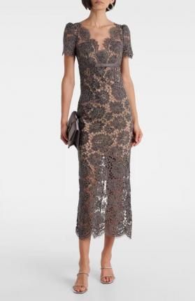 肌の上で優しく咲き誇るフローラルレースが、ラグジュアリーで上品なミディドレスです。