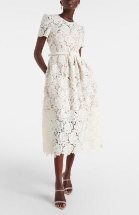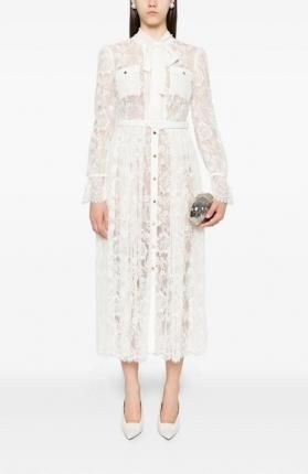 淑やかなディテールに総レースが上品さを引き立てるミディドレス。