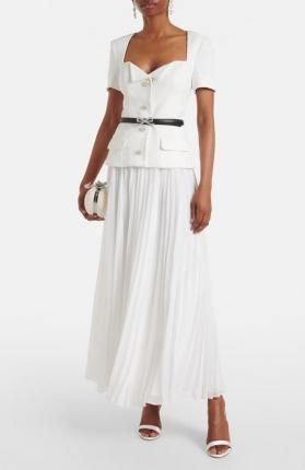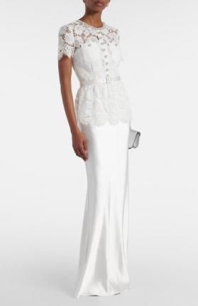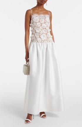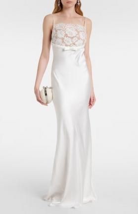 繊細なレースと光沢が織りなす、タイムレスなホワイトドレス。
