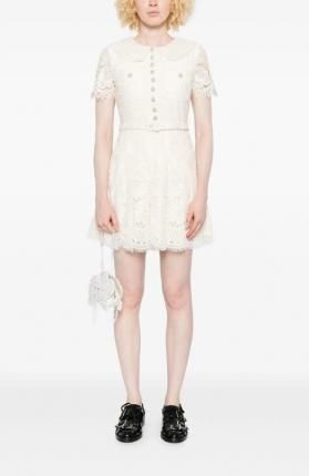 総レースにゴールドボタンが華やかなミニドレス。着るだけでフェミニンな気分にしてくれます♡