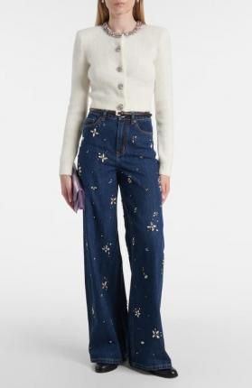 ホワイトニットにブラックビジューが映えるカーディガン。着るだけで上品におしゃれ見えする1着♪