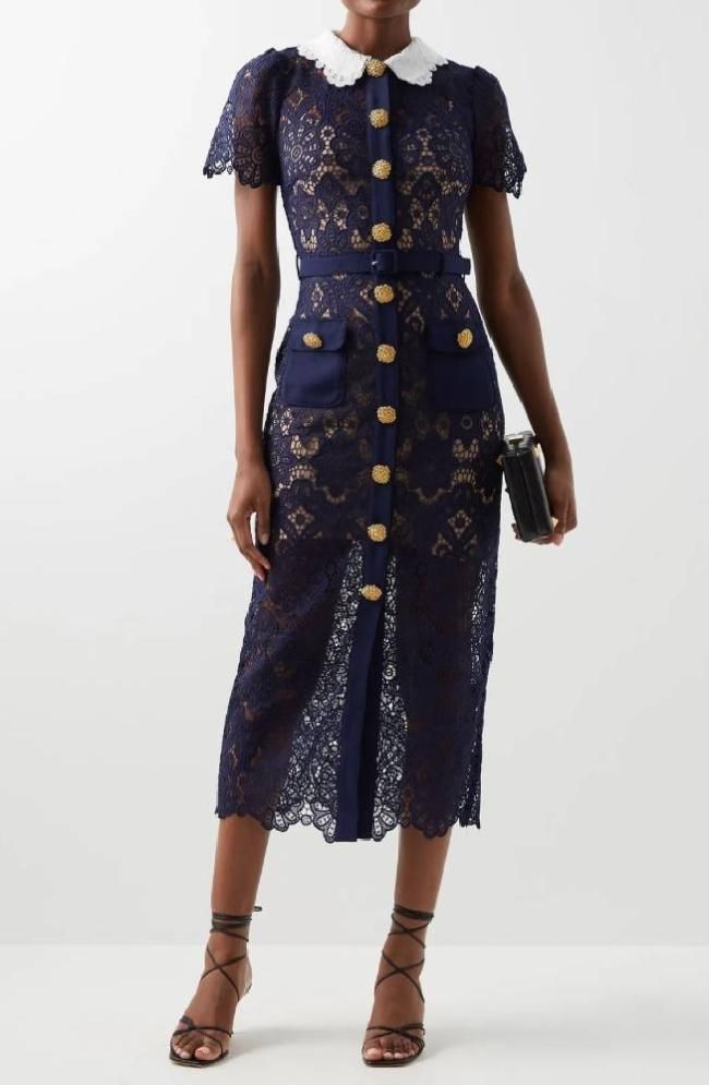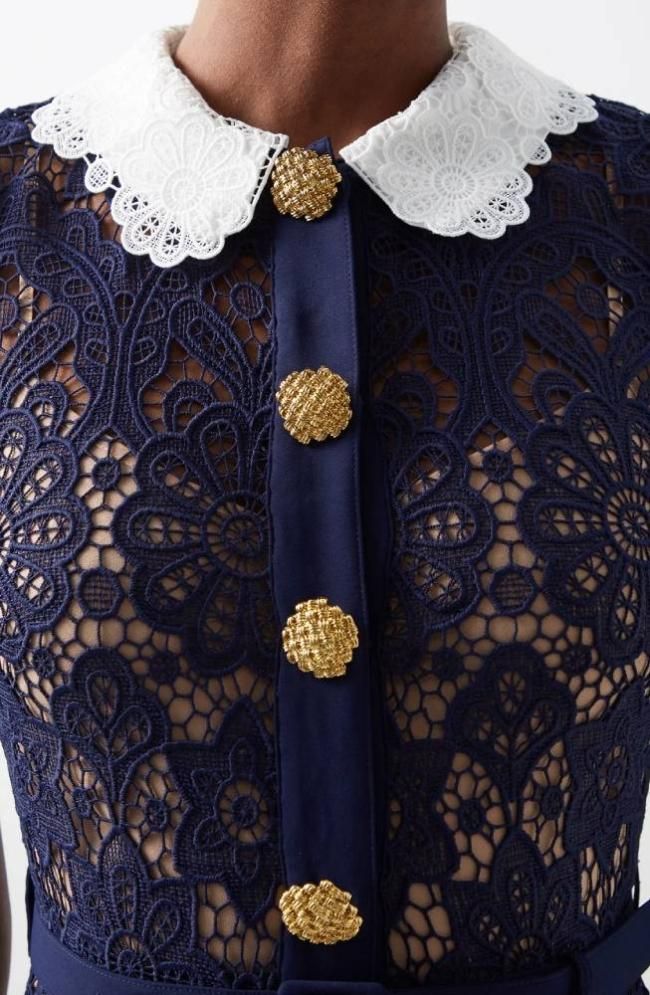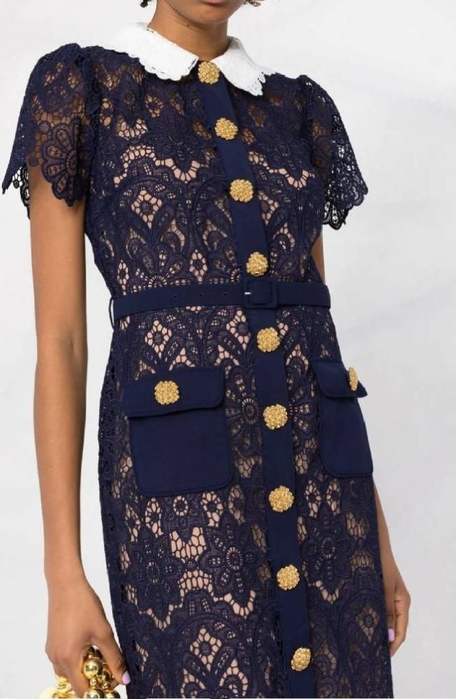 UK8のみ即納品入荷しました! ネイビーのフローラルレースにゴールドのエンボスボタンが映える! 贅沢な総レース遣いがリッチ感漂う 上品かつクラシカルな印象のミディドレス。 気品を感じるネイビーのフローラルレース。 フロントには贅沢にエンボス加工されたゴールドのボタンを配置。 特別なネイビーカラーをより引き立たせてくれます ネックラインカチッとしたコントラストカラー(襟)で お顔周りを明るくしてくれます。 スカラップでデザイン性を忘れないところもポイントですね♪ ウエストはベルトでマーク。 体のラインに程よくフィットするシルエットは 優雅で洗練された女性らしさを演出してくれます ベージュの裏地がしっかりついているので一枚でも安心♪ レースから覗く素肌が美しく、視線は釘付け☆ 幅広いシーンで活躍するミディドレス。 大切な人の心に残る、魅力いっぱいのドレスです☆ ブラックのミニドレスもございます♪ フローラルギピュアミニドレス ブラック 黒 セレブに愛される”セルフポートレイト ” 女性らしさ溢れるモードフェミニンな世界をお楽しみください。