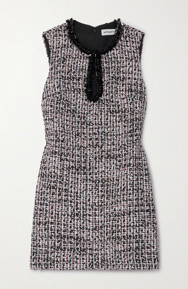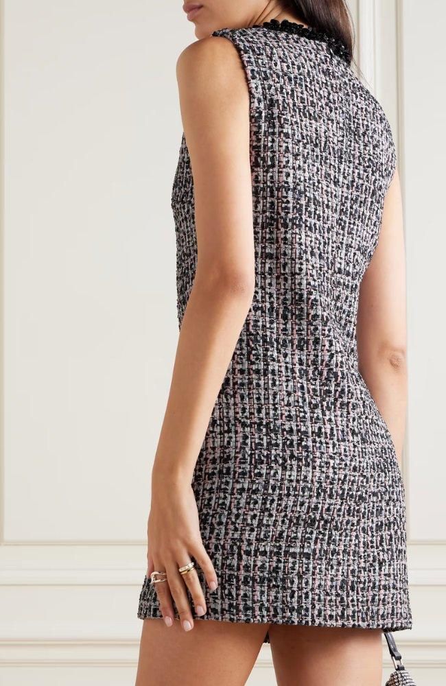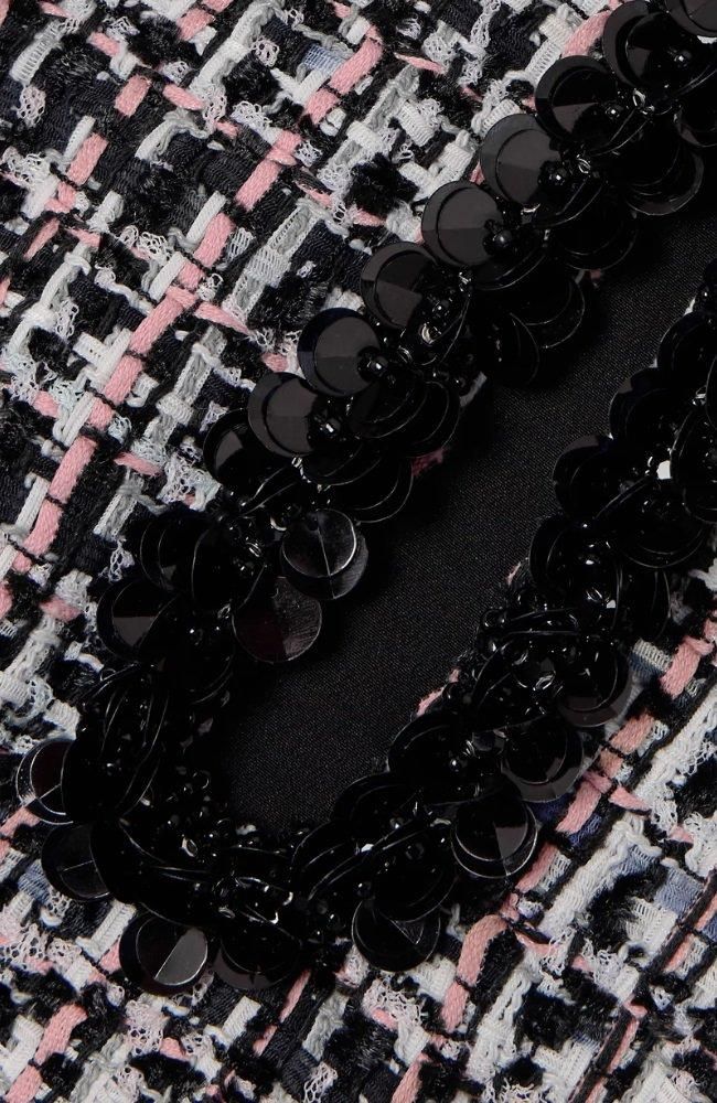 【SALE】ブークレー ツイード スパンコールトリム ラウンドネック ノースリーブ ミニドレス ブラック 黒