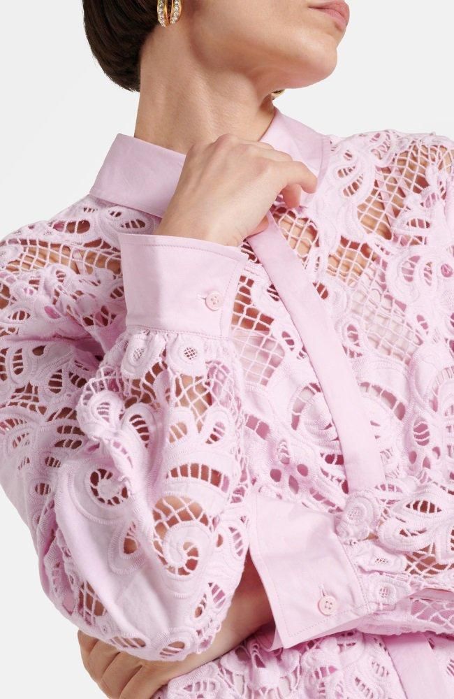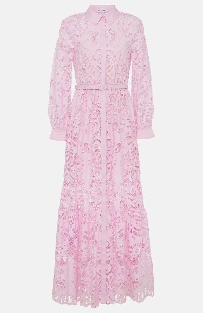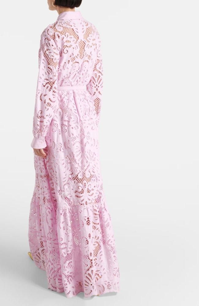 【SALE】コットン レース ロングスリーブ ベルト付き シャツ マキシドレス ピンク