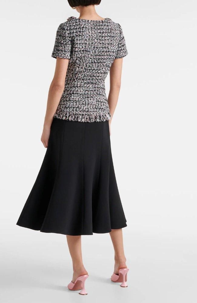 【SALE】フリンジツイード Aラインスカート ツーピース風 ミディドレス ブラック 黒