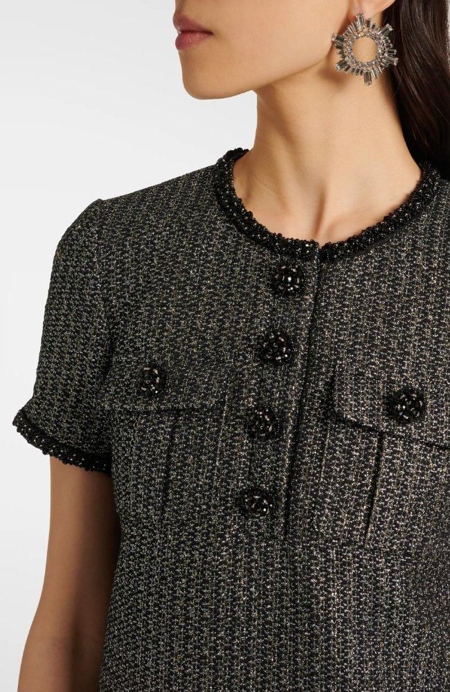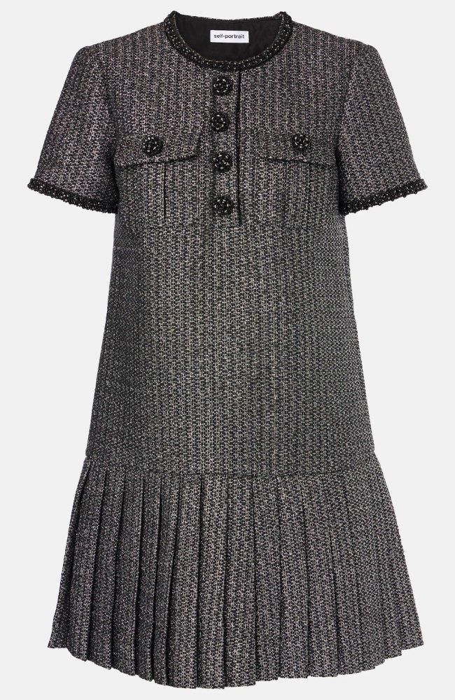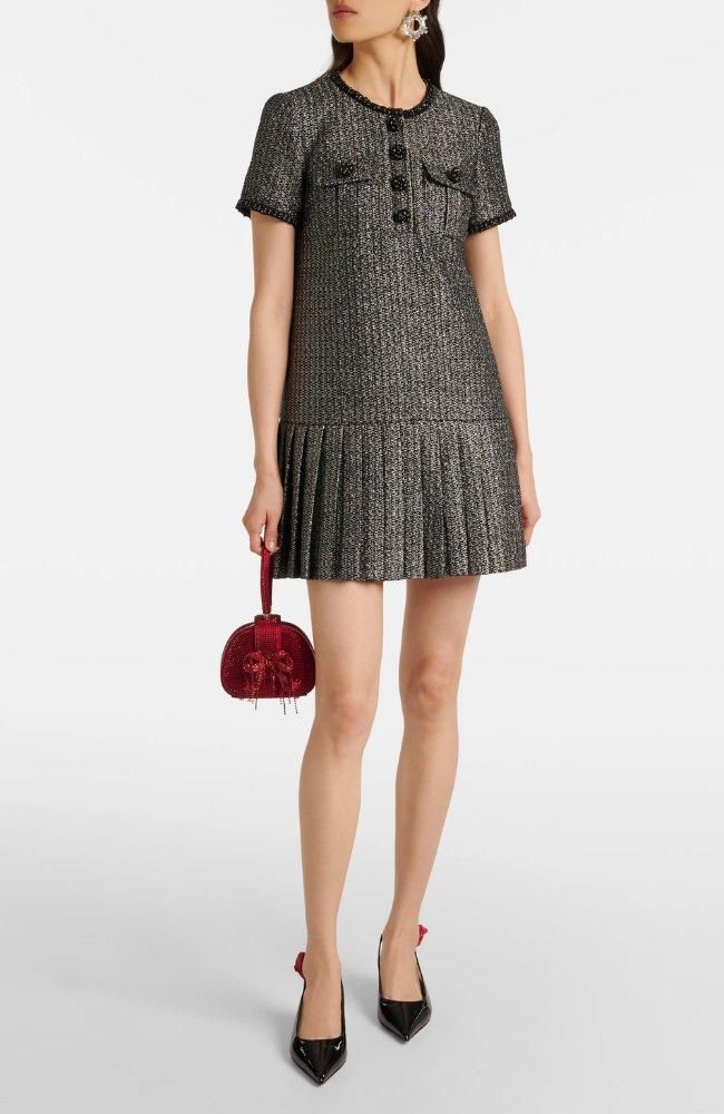 表情と輝きのあるブークレー素材がポイントのミニドレスです。