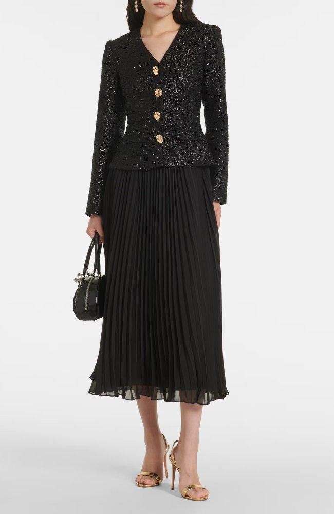 ツイードとシフォン素材によるプリーツのコントラストが華やか♡