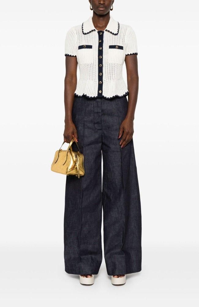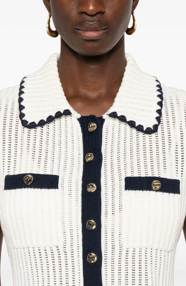 ホワイトのニット生地にネイビーのステッチがキュート♡