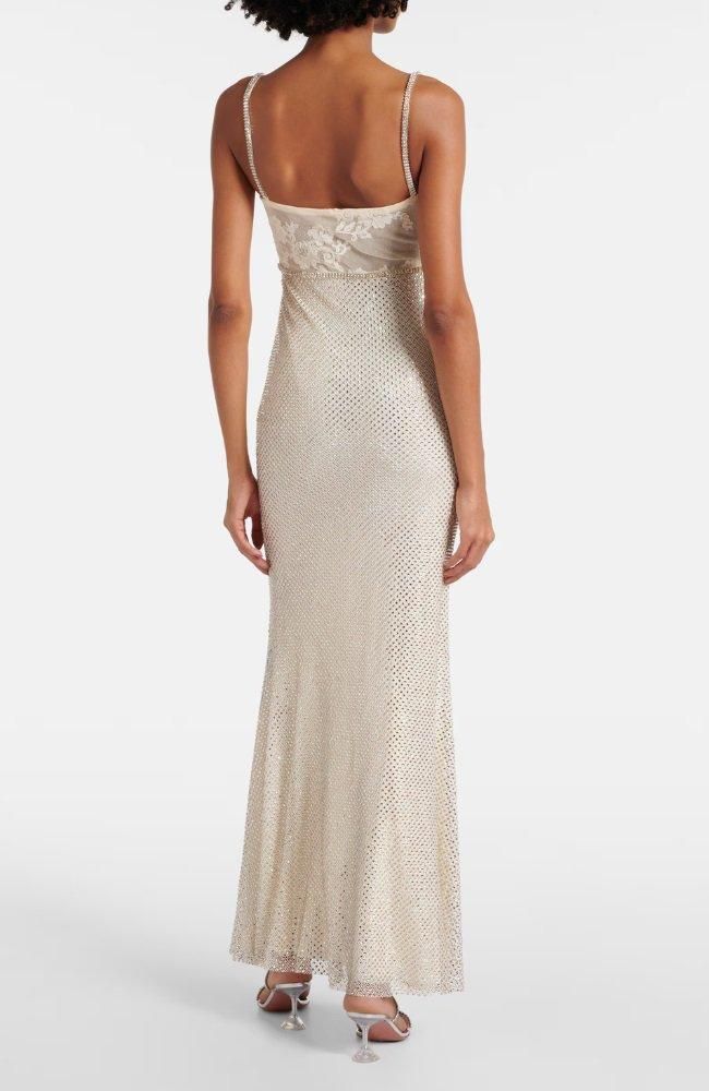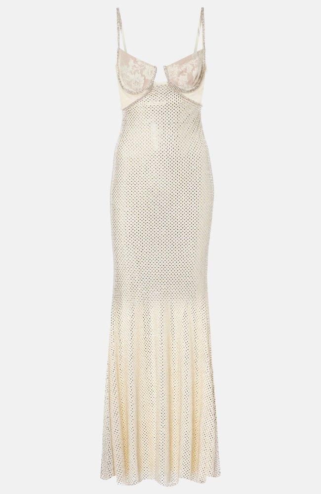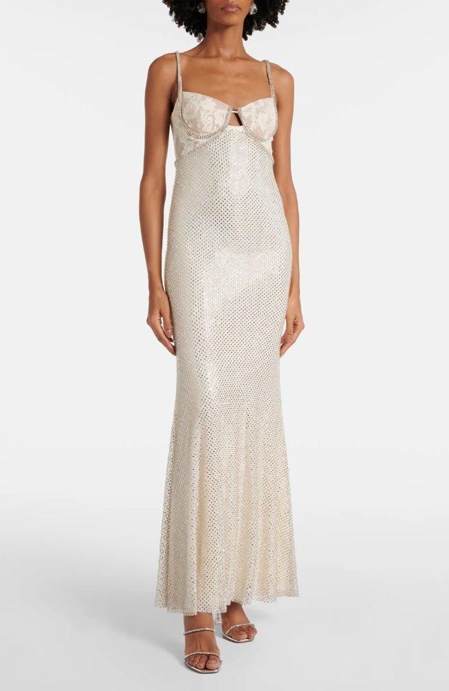 大胆なランジェリーディテールがセクシーで華やかなマキシドレス。
