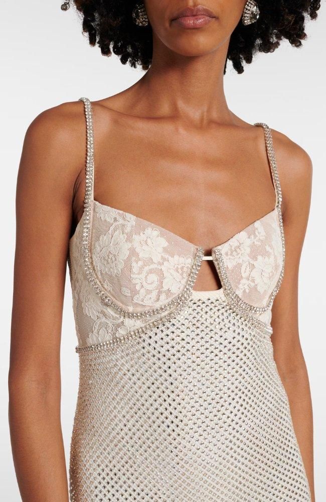 セクシーなランジェリーディテールにくぎ付けになるマキシドレス。