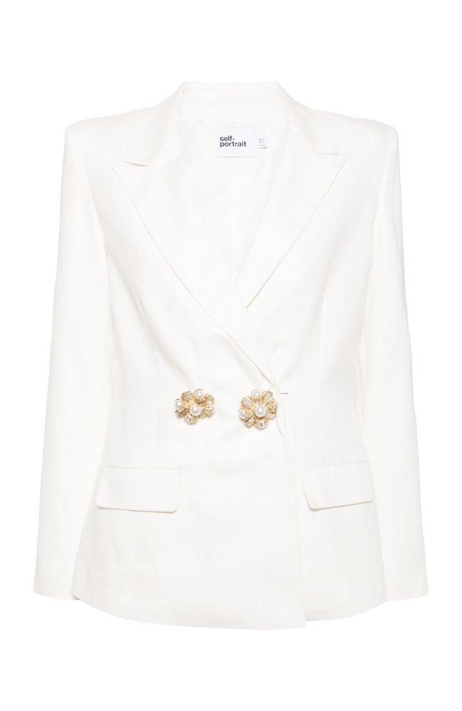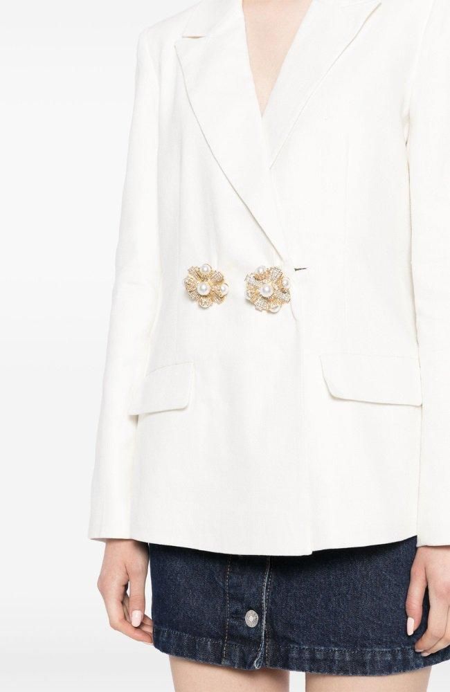 リネン コットンブレンド ダブルボタン ジャケット ホワイト 白