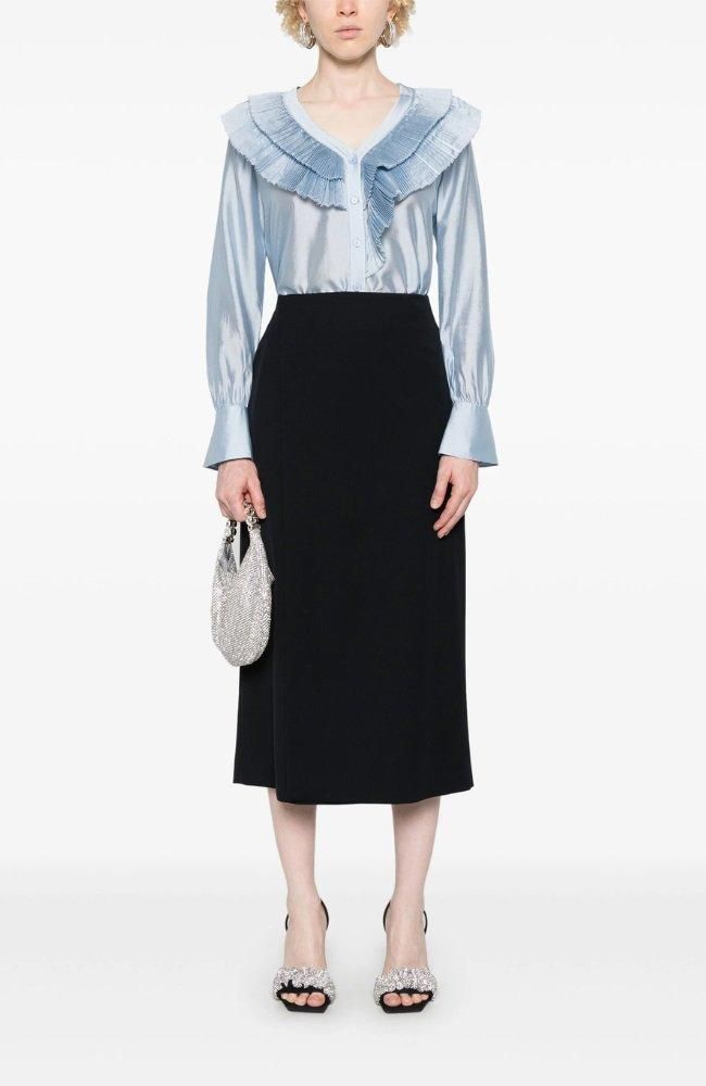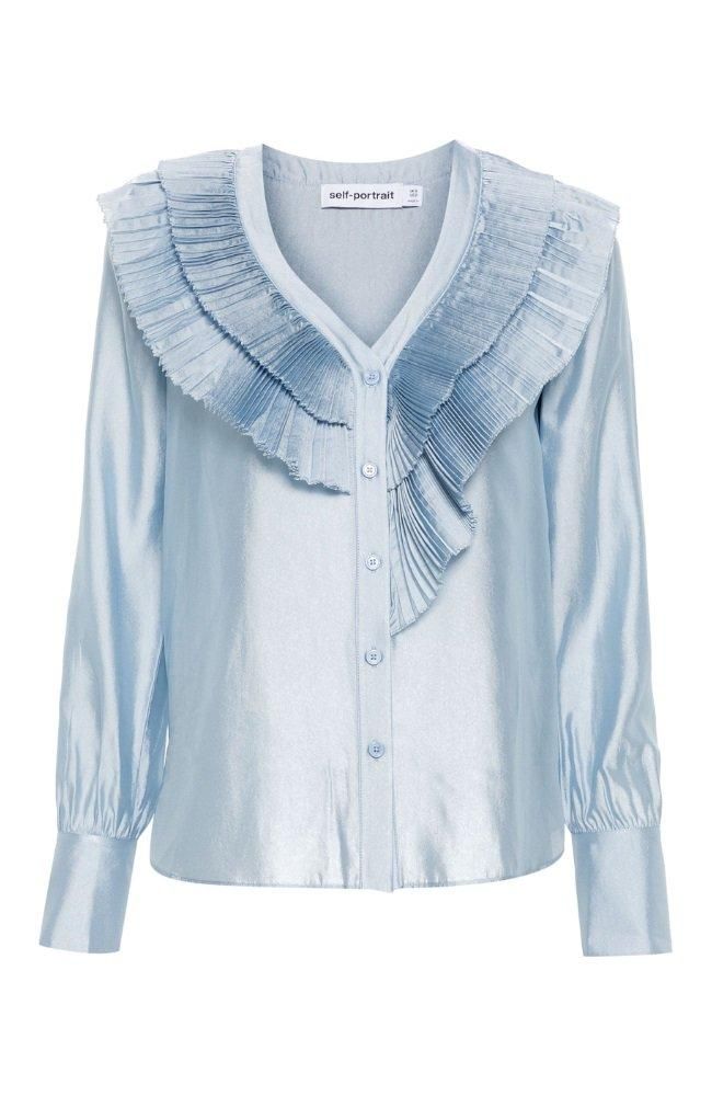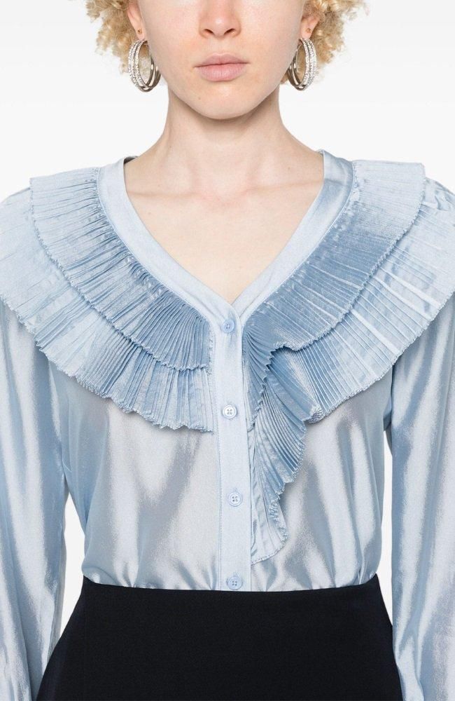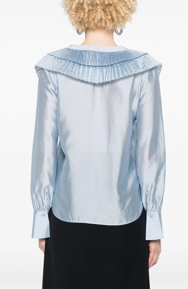 サテン プリーツ ラッフル ブラウス ブルー 青 水色