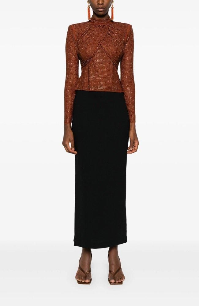 ラインストーン ハイネック ツイスト トップス キャラメルブラウン 茶色