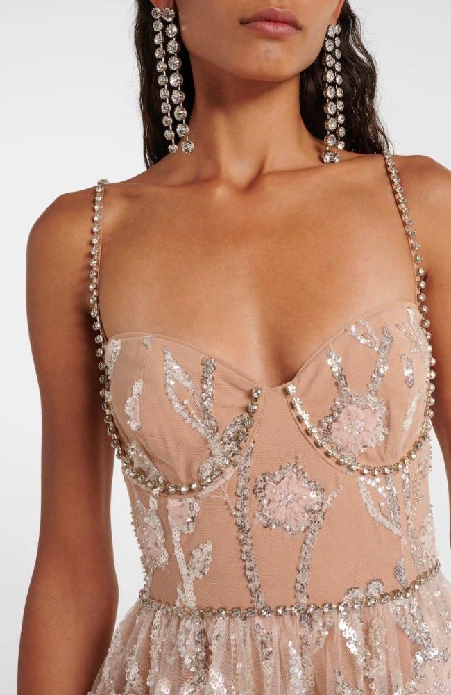 まるで肌に浮かぶようにスパンコールが輝くディテールがラグジュアリーです♡