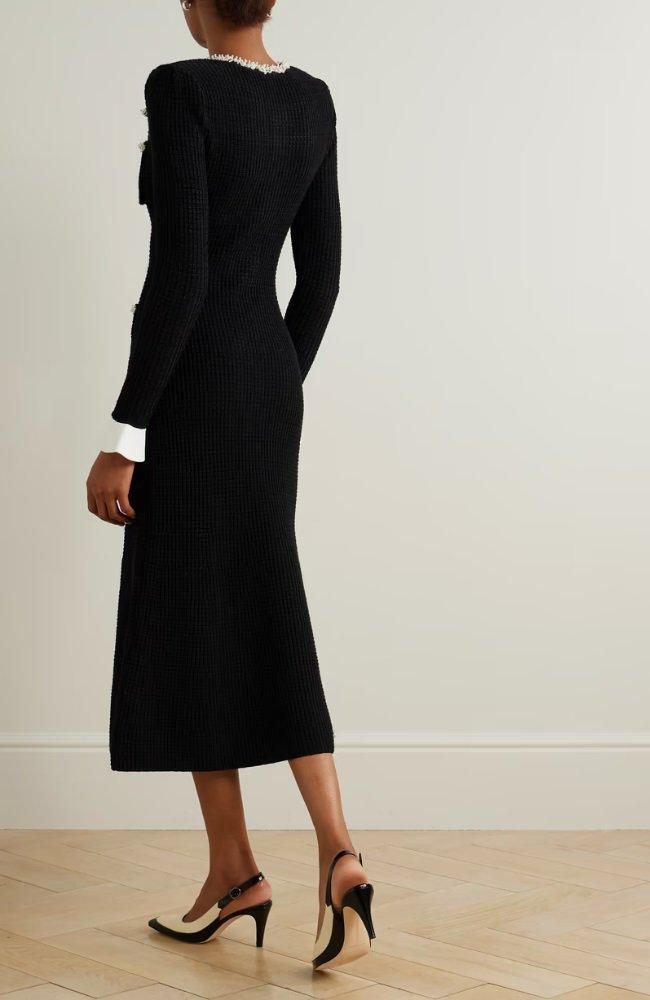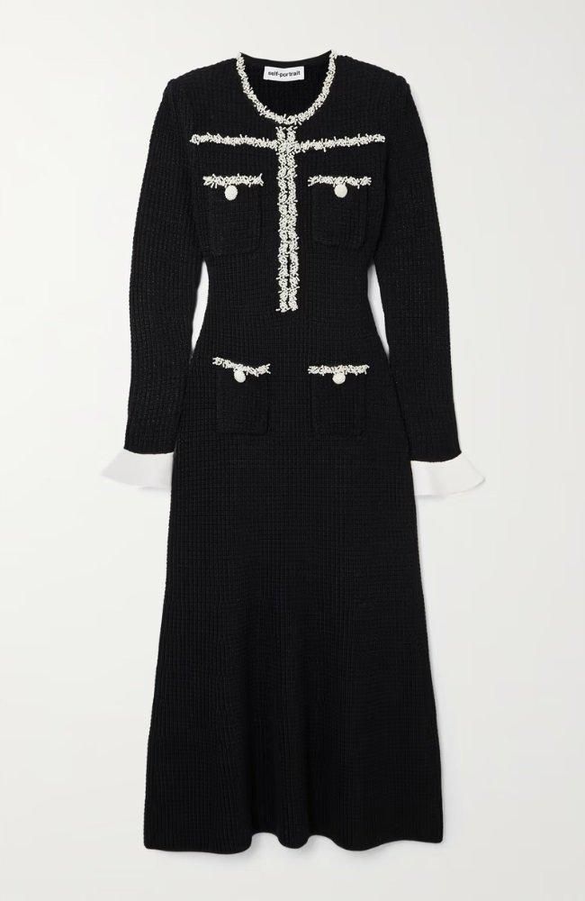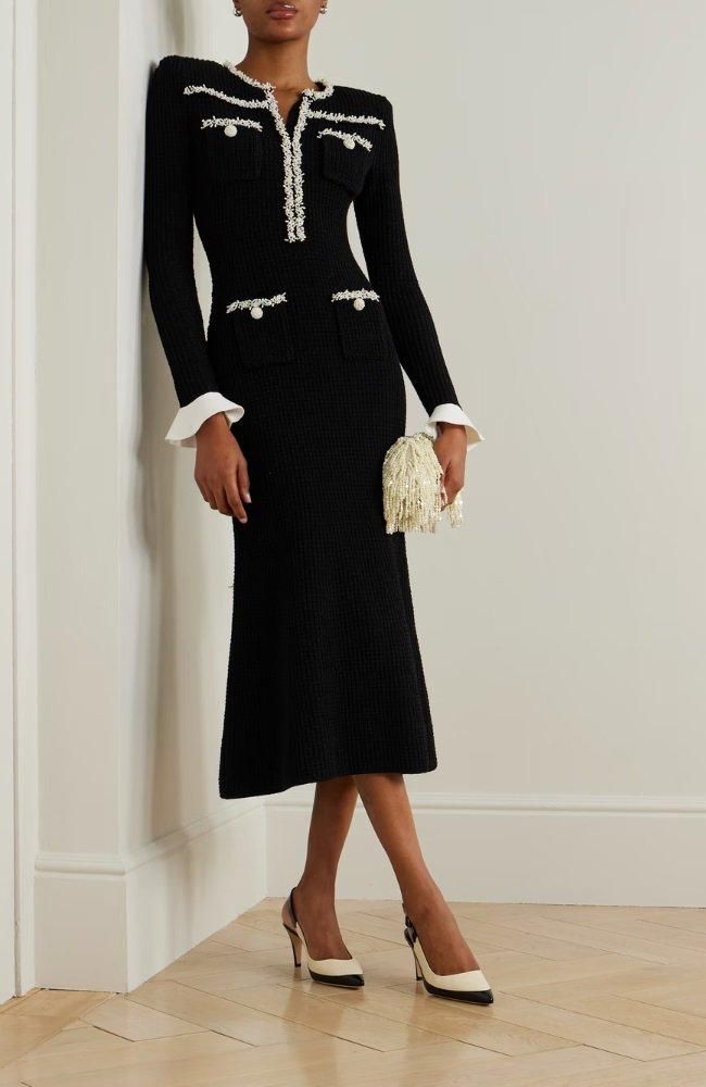 パールトリムの輝きが華やかなニットドレス。