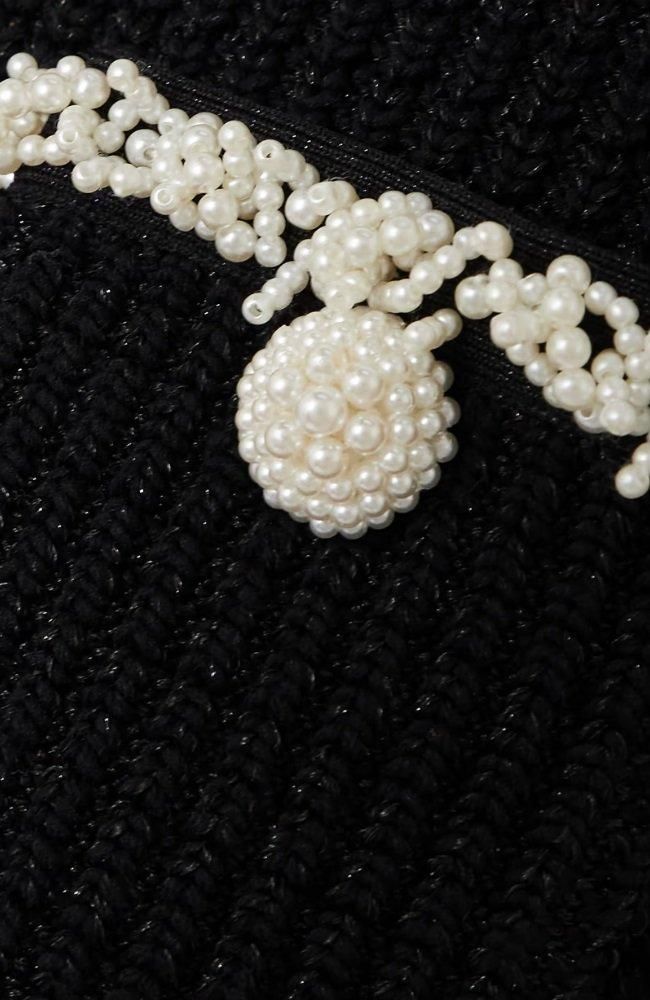 トリムに用いられたパールの上品な輝きがポイントで、