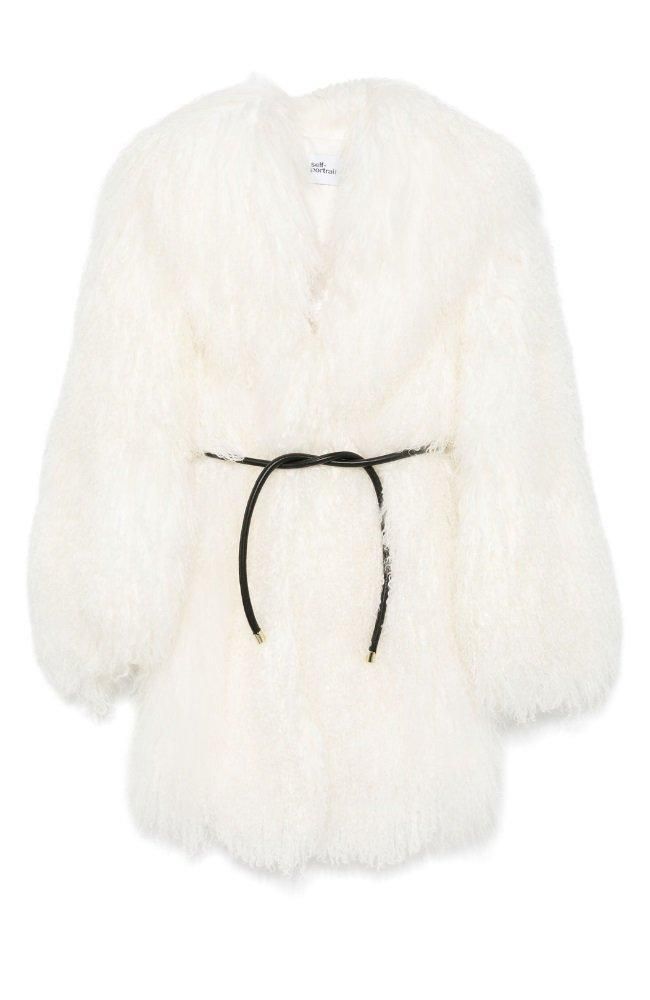 ムートン ワイドラペル ベルト付 コート クリーム ホワイト 白