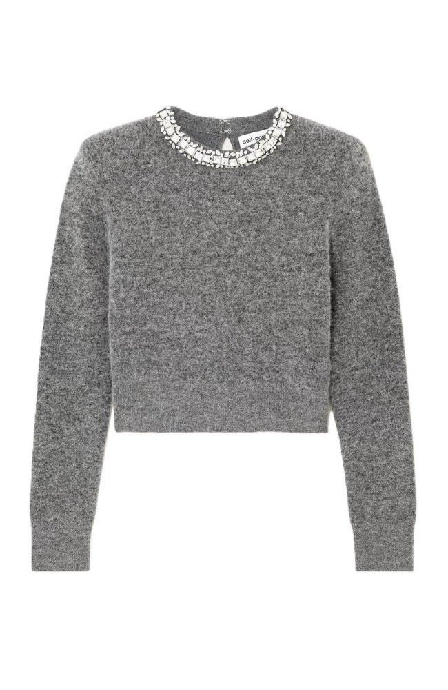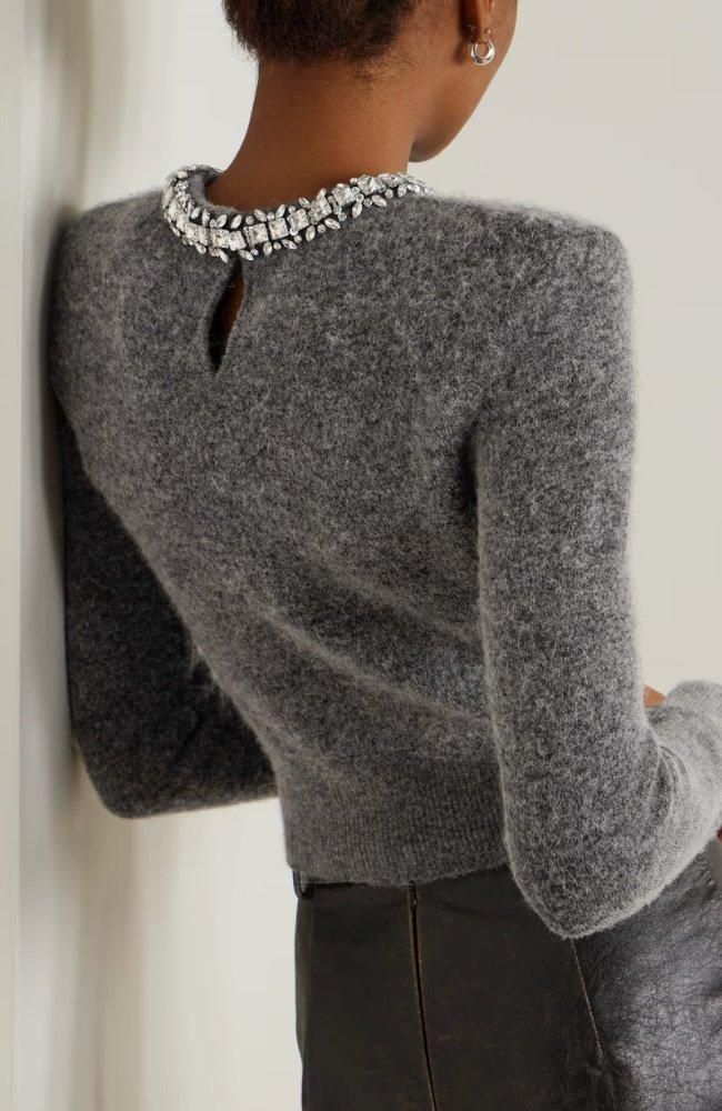 クリスタルトリム アルパカブレンド ニット トップス グレー