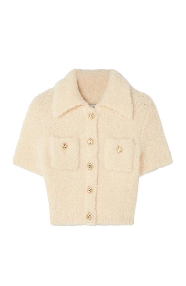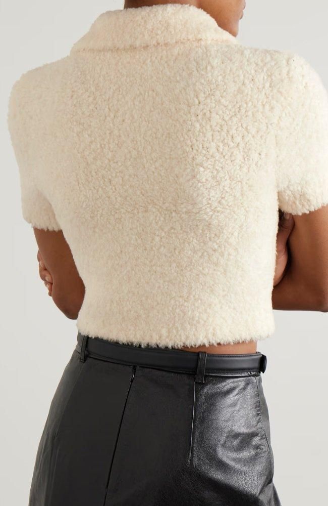 ウールブレンド ブークレー クロップド ニット トップス クリーム ホワイト 白