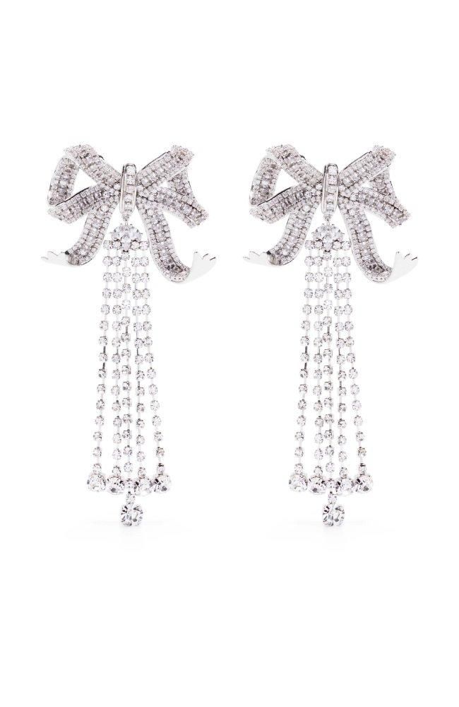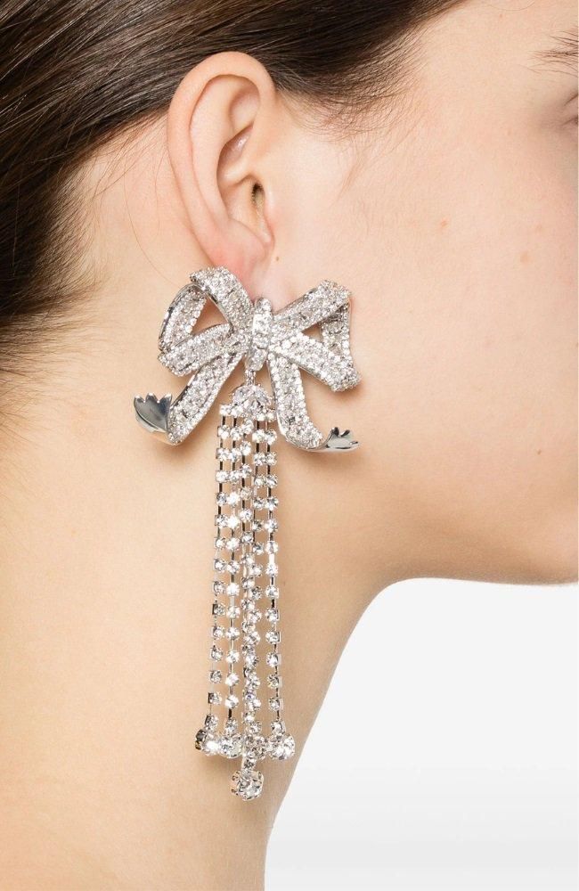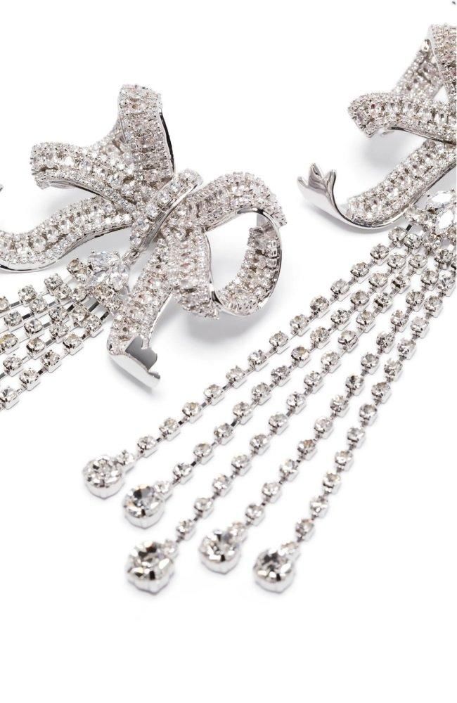 クリスタルリボン フリンジ ロング ピアス シルバー