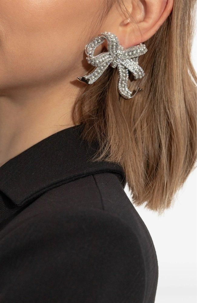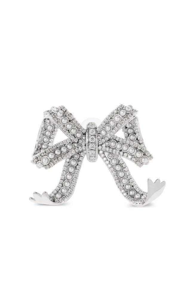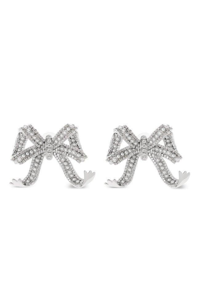 クリスタルリボン パール シマー仕上げ ピアス シルバー