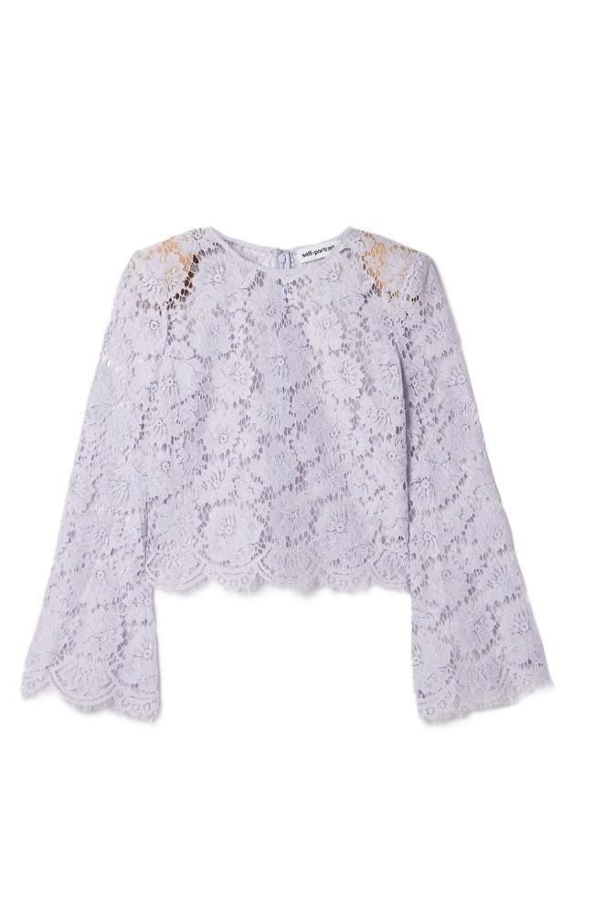 フローラルレース フレアスリーブ コットン トップス ライラック 紫