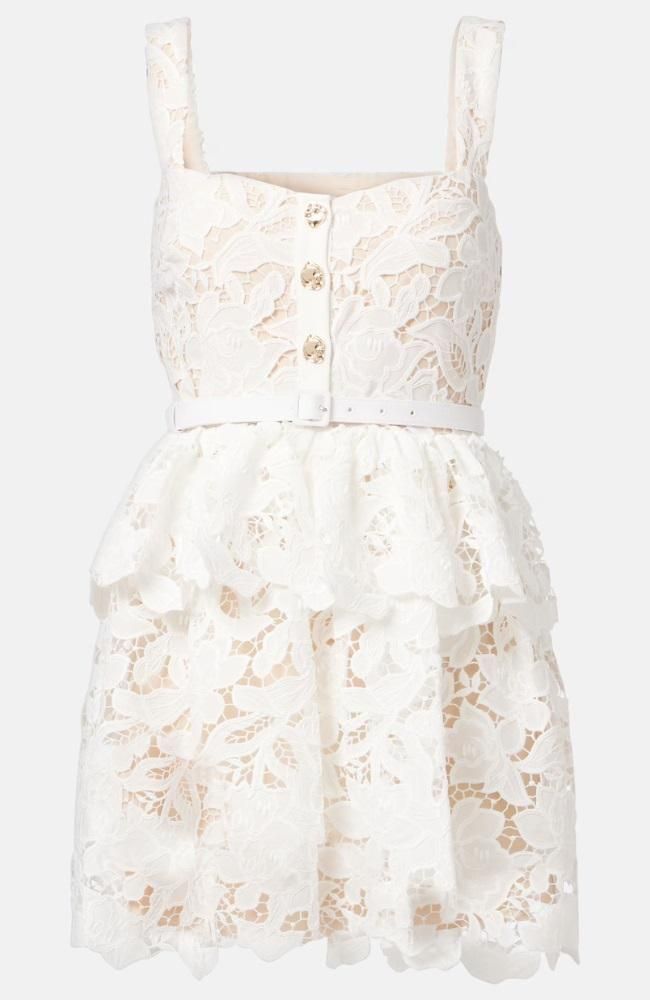 レース ティアード ベルト付 ミニドレス ホワイト 白