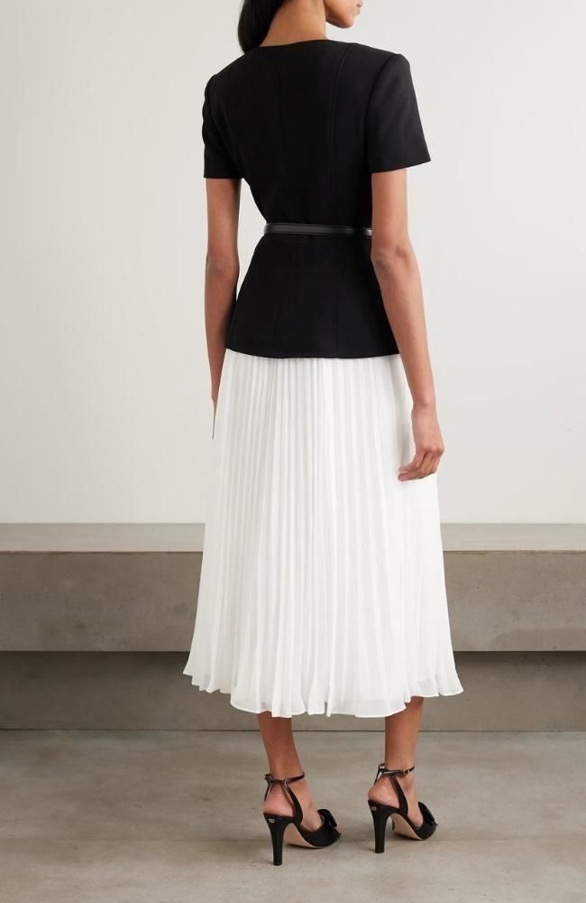 【SALE】再値下げ! クレープ シフォン ベルト付 ミディドレス ブラック 黒 ホワイト 白