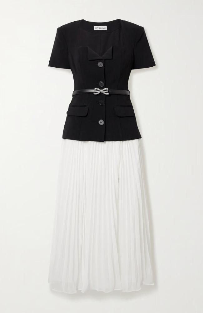 まるでスタイリングしたようなツーピーススタイルのミディドレス。