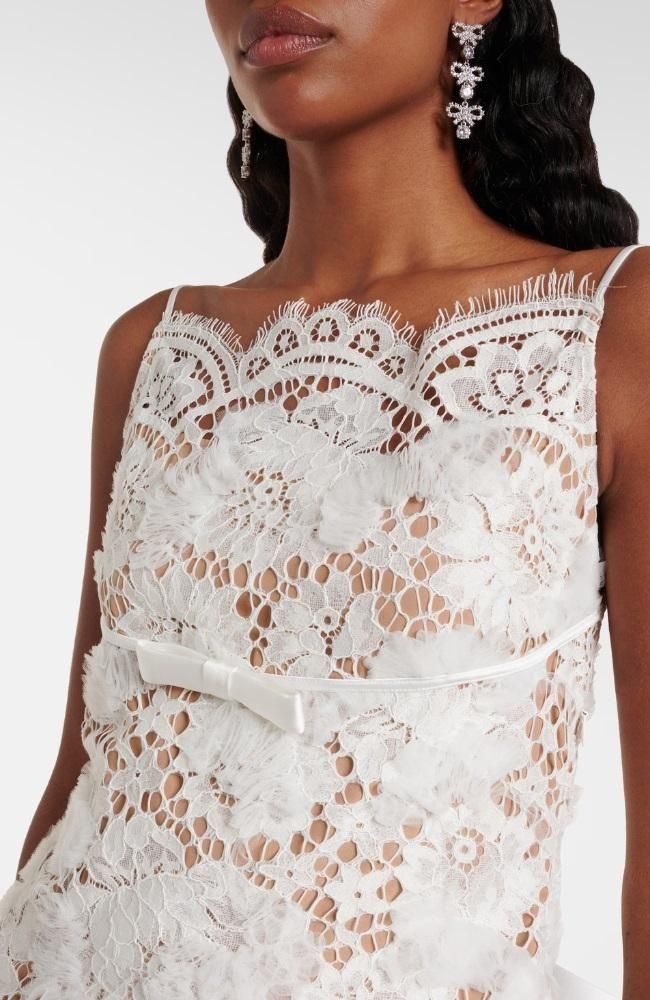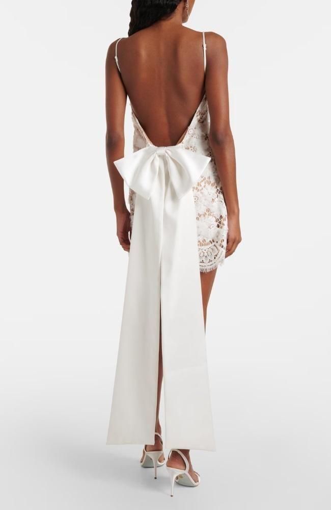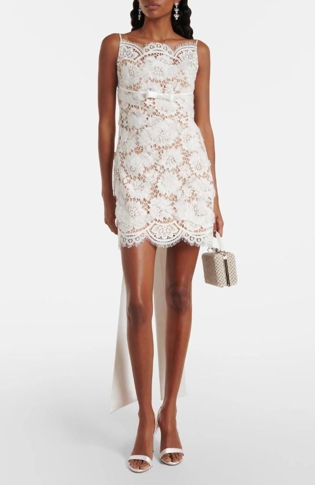 フローラルレース バックリボン スリーブレス ミニドレス ホワイト 白