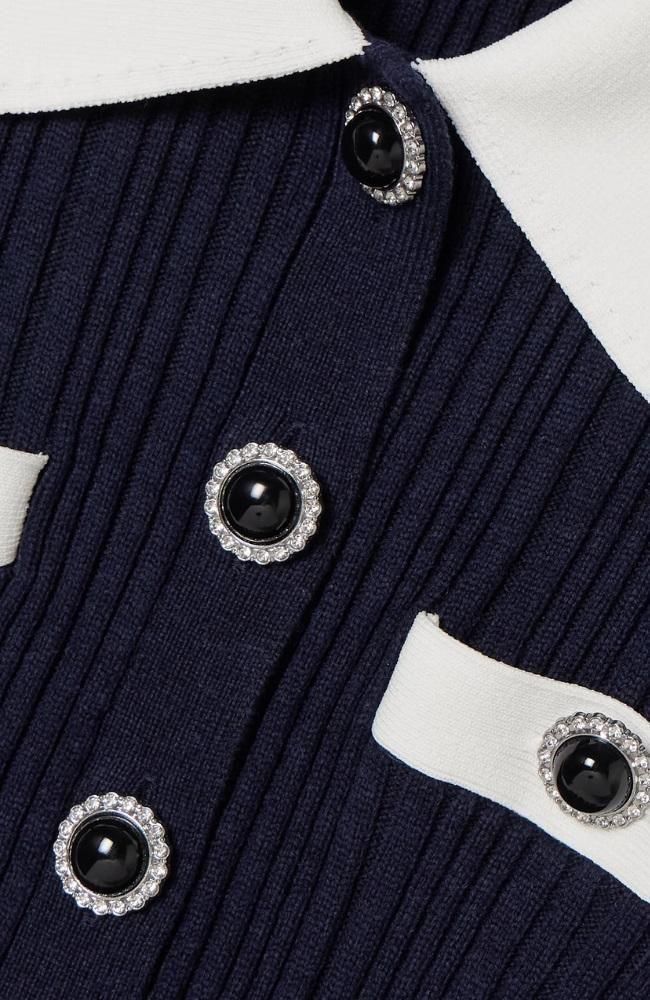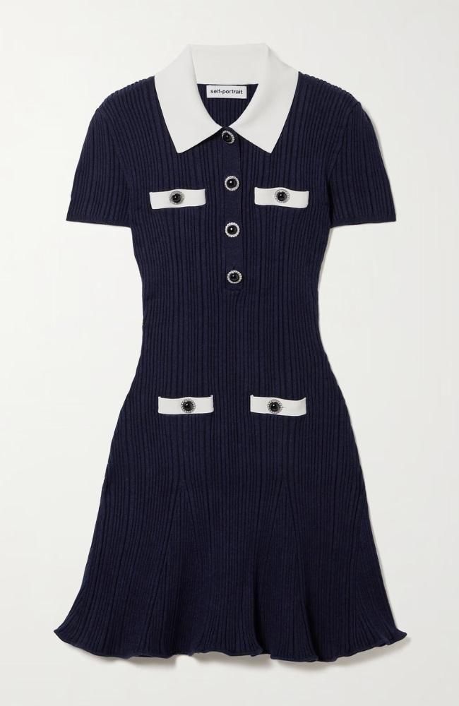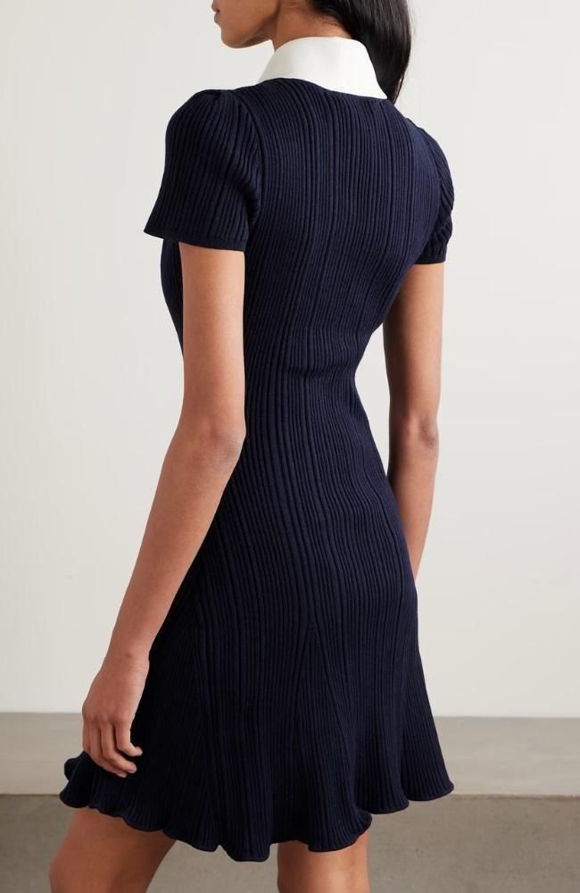 リブニット コントラストカラー フレア ミニドレス ネイビー 紺