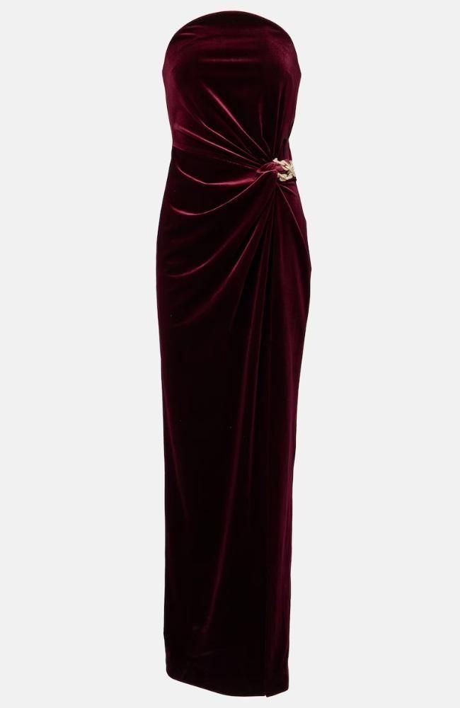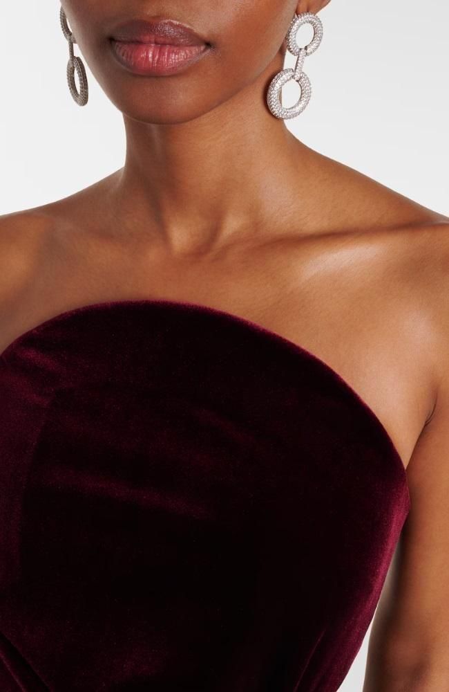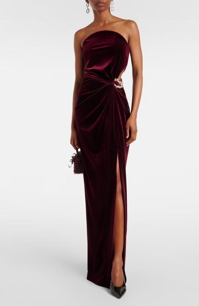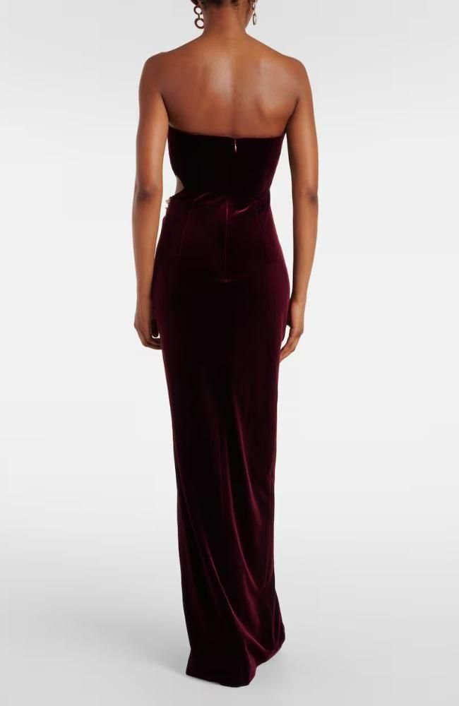 ベルベット ストラップレス カットアウト マキシドレス バーガンディ レッド 赤