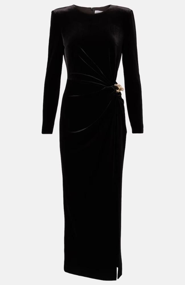 柔らかな光沢と滑らかな毛足の質感が上品なベロアマキシドレス。