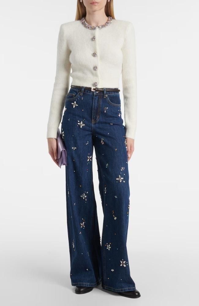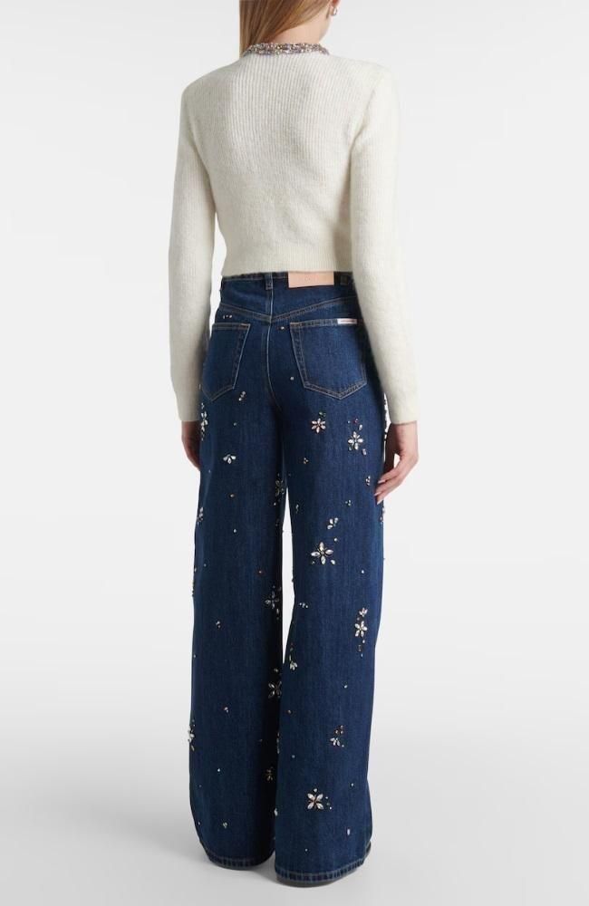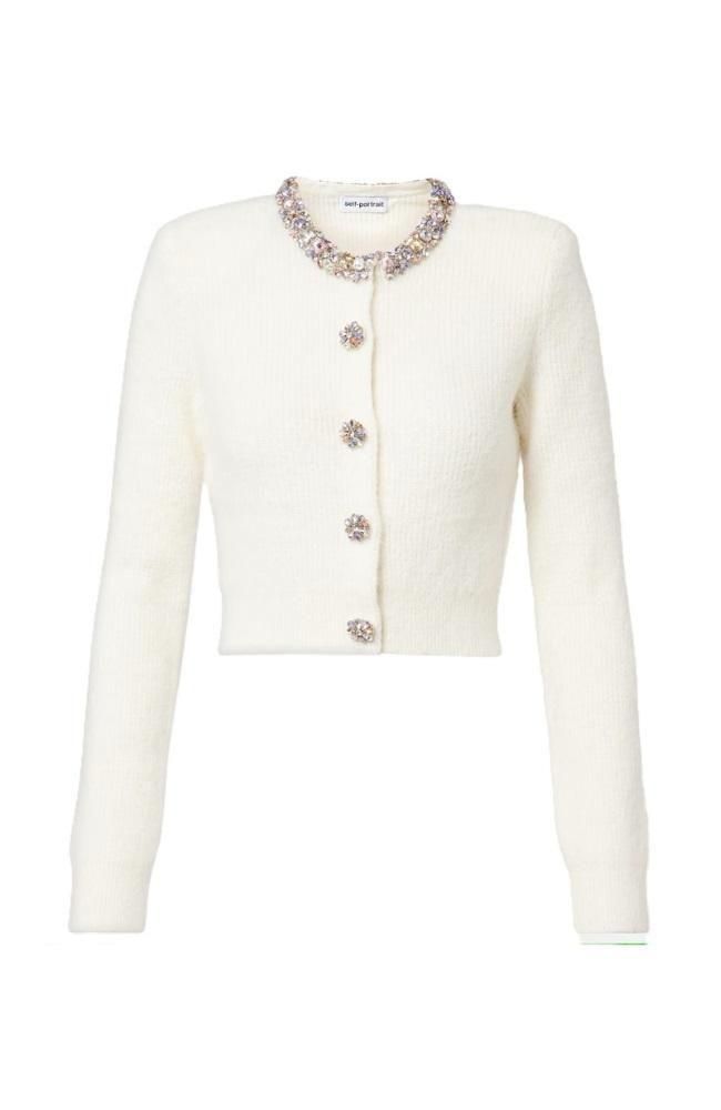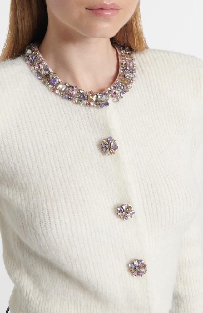 クリスタルトリム リブニット アルパカウール カーディガン ホワイト 白