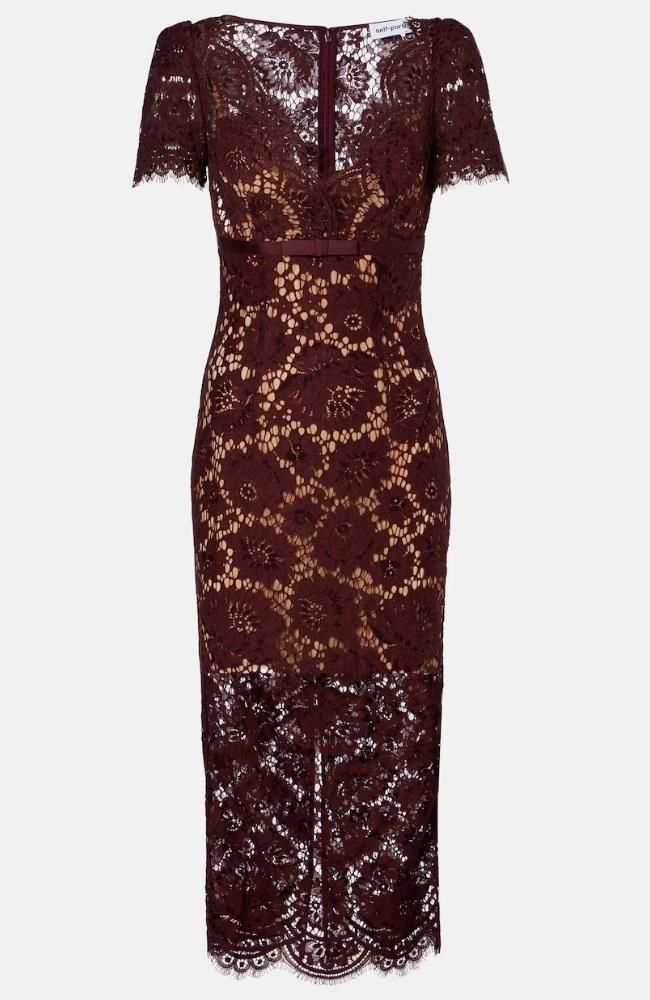 シックなカラーで華やか見えしますが、普段使いもしやすいレースドレス。