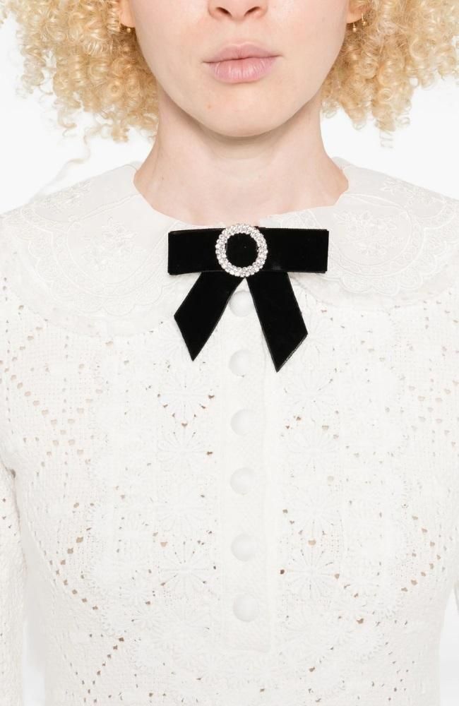 アイレット刺しゅうの優雅な表情にブラックリボンが映える、