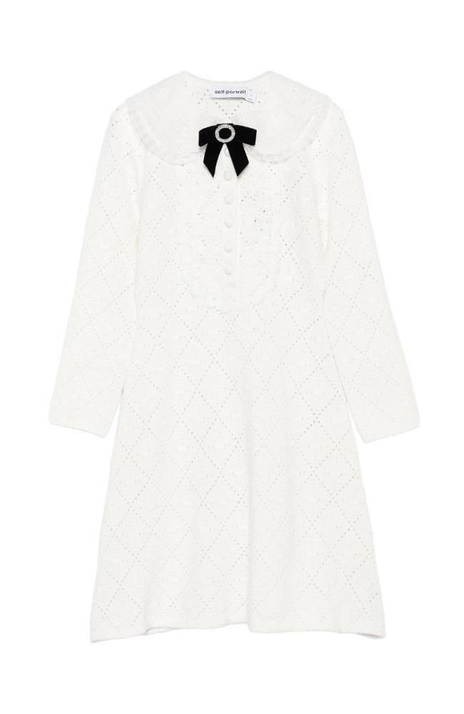 【SALE】アイレット リボントリム ビブ ニット ミニドレス ホワイト 白