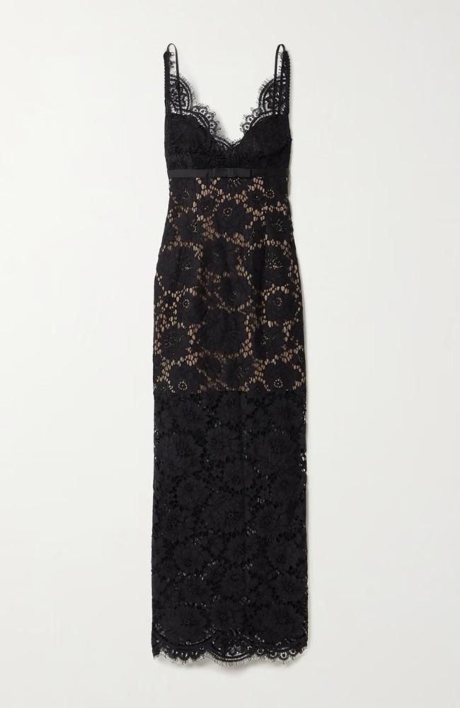 レース サテントリム キャミソール マキシドレス ブラック 黒