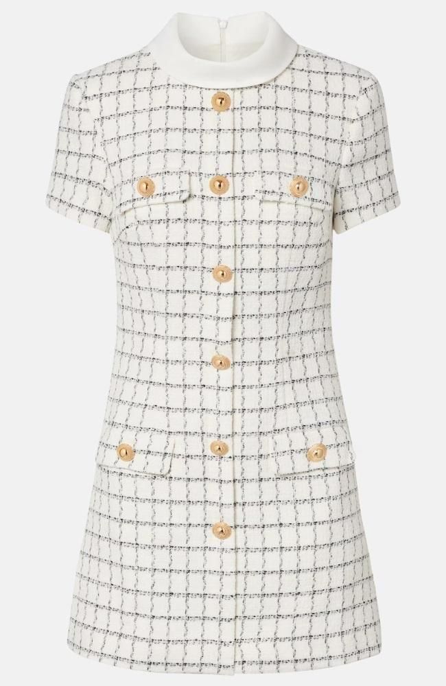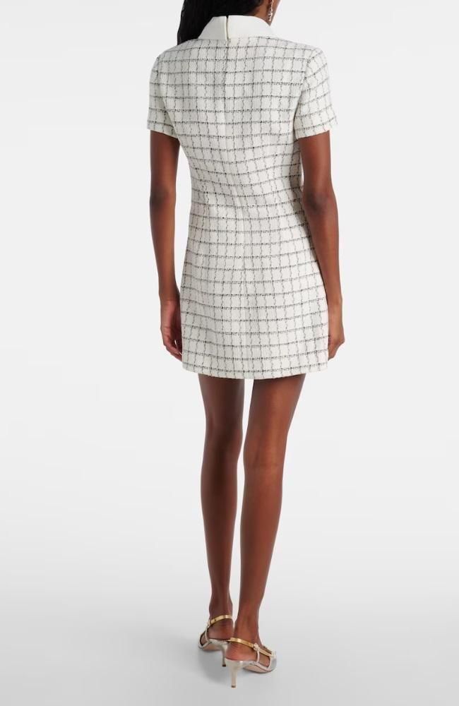 コントラストカラー チェック柄 ブークレー ミニドレス ホワイト 白