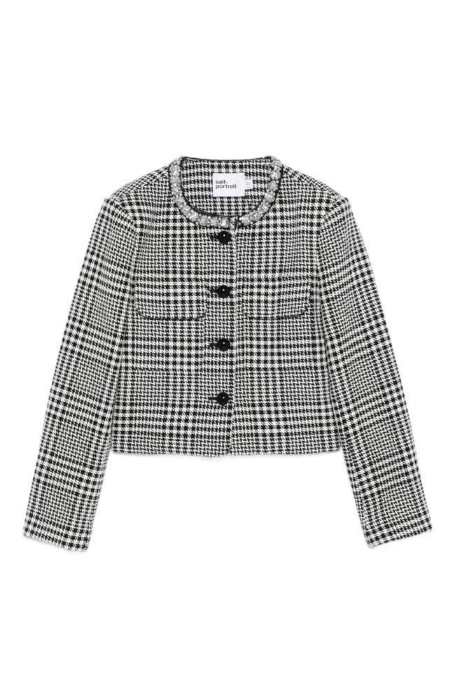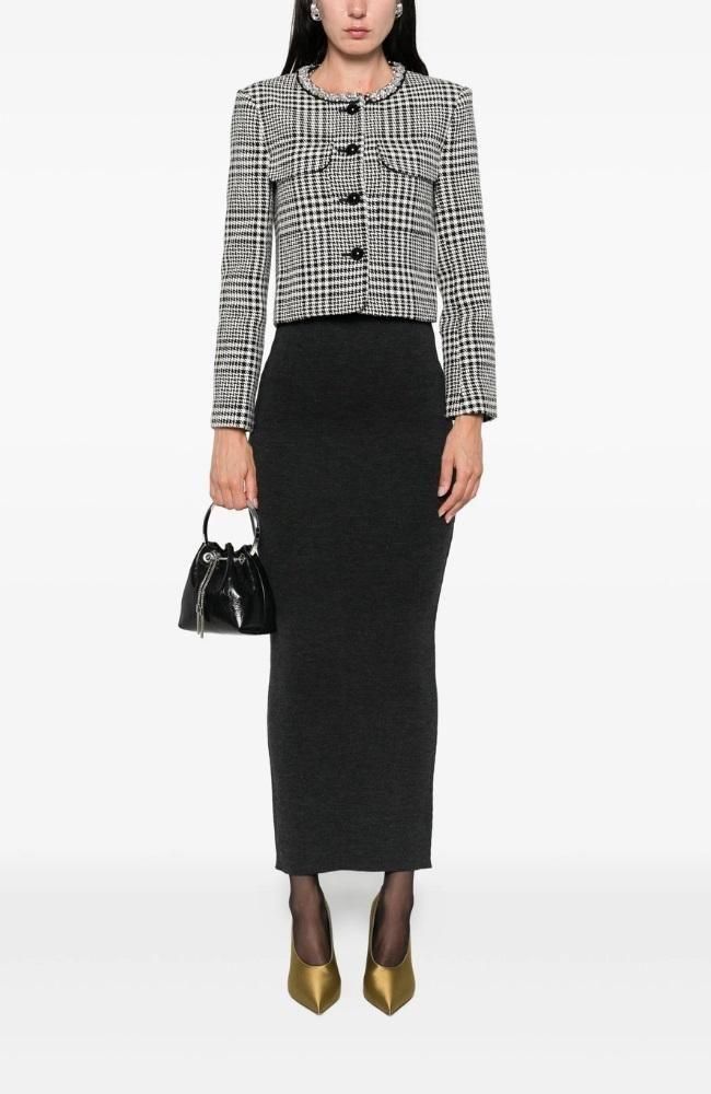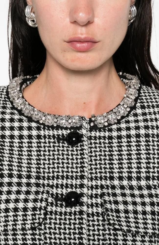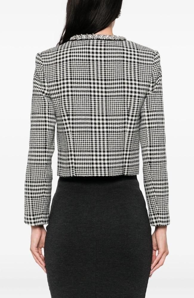ハウンドトゥース ウールブレンド ラウンドネック ジャケット ブラック 黒