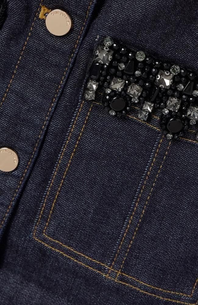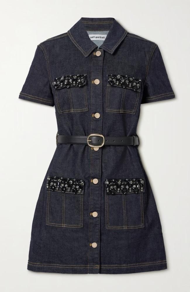煌めくビジュー刺繍ポケットが華やかさをプラスするデニムドレス。