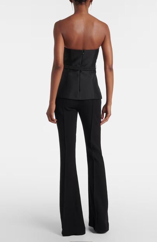 この1着だけで凛として美しい印象になれる1着です♪ 光沢感とハリ感を持つタフタ素材を贅沢に使用し、 シンプルながらもラグジュアリーな存在感を放つストラップレスジャンプスーツ。 ドラマティックに着映えしてくれる1着です♪ リュクスなジュエルボタンがアクセントとなるこちらのジャンプスーツ。 パリッとしたクリーンなシルエットは、都会的で凛とした佇まいを演出します♡ ウエストには美しいくびれを作るベルトディテールが施され、 立体的なフラップポケットでジャケットライクな表情をプラス。 トップス部分には内部コルセット付きのため、女性らしいボディラインをキープしてくれます♪ 足元にかけて広がるフレアシルエットは、 動くたびにエレガントな揺らぎを生み出します♪ アクセサリーやクラッチバッグを添えれば、 パーティーやフォーマルシーンで視線を集める存在に。 1着で主役級になれるジャンプスーツです♪ こちらのジャンプスーツの型違いはこちら♪ ストラップレス ジュエルボタン フレア ミディドレス ブラック 黒 ストラップレス ジュエルボタン サテンツイル トップス ブラック 黒 セレブに愛される”セルフポートレイト ” 女性らしさ溢れるモードフェミニンな世界をお楽しみください。
