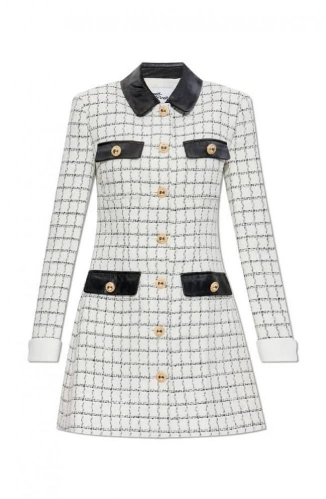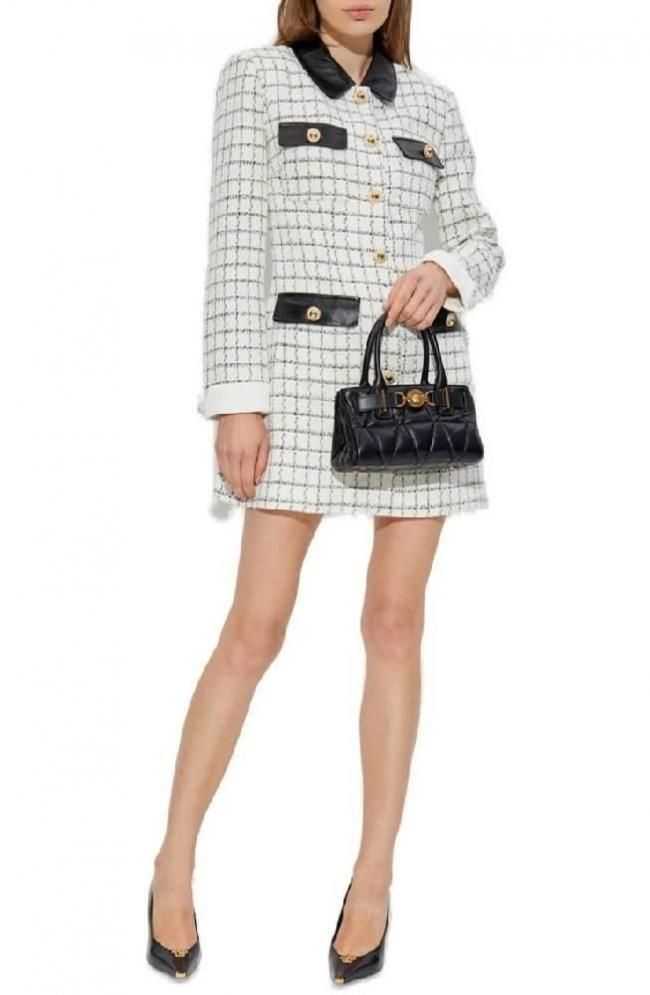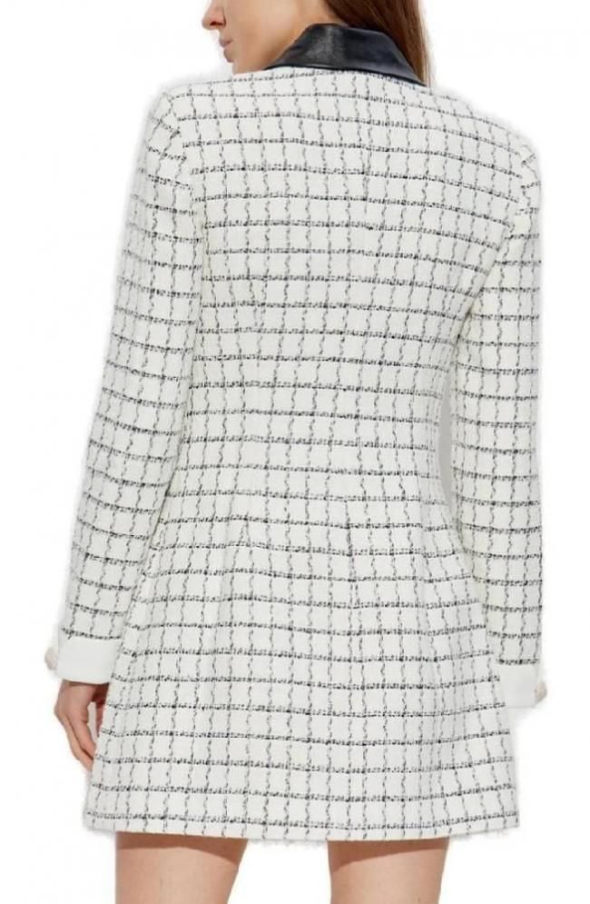 【SALE】チェック ブークレ 長袖 ミニドレス ホワイト 白