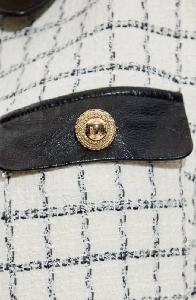 清楚なホワイトベースに繊細なチェック柄を織り込んだ、