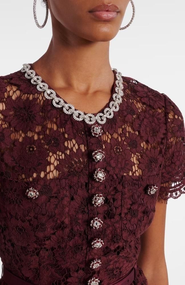 クラシカルなボタンディテールとペプラム風のレースデザインは、
