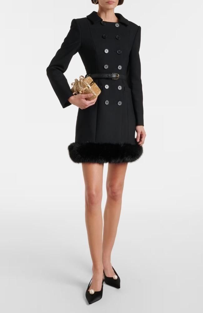 裾のファートリムが季節感を表すミニドレス。