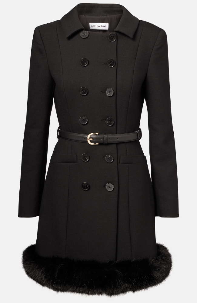裾に贅沢にあしらわれたフェイクファーが、