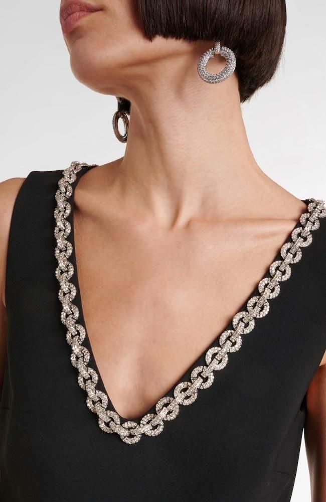 クリスタルチェーン クレープ Vネック ミニドレス ブラック 黒