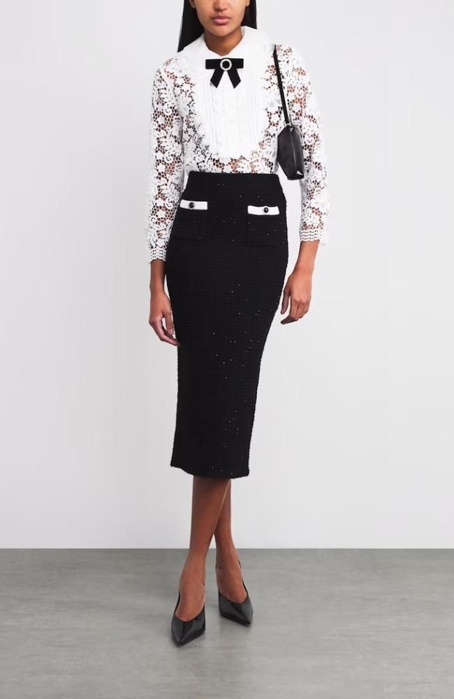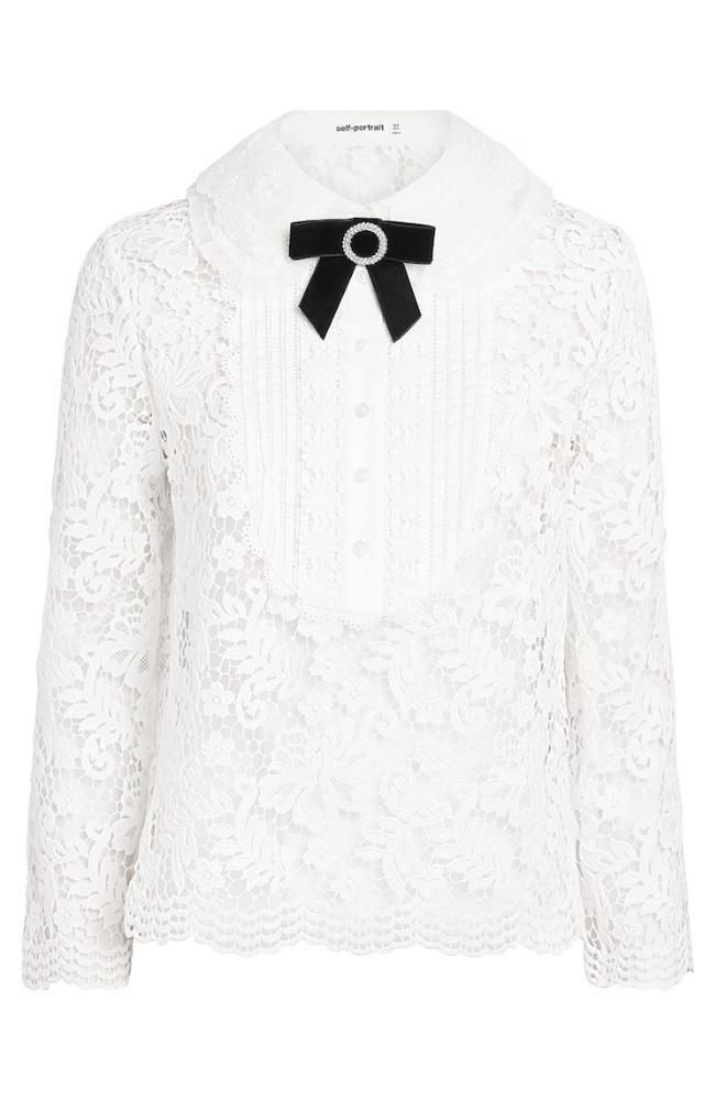 繊細な総レースが印象的な、クラシカルムード漂うブラウス。