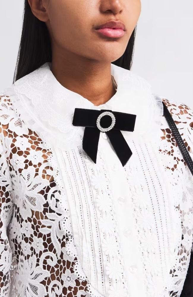 レース フロントビブ ベルベットリボン ブラウス ホワイト 白